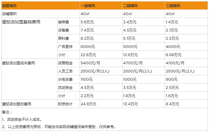 開家蛋撻店投資一般需要多少錢?三線城市投資8萬