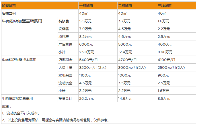 開家牛肉粉店投資一般需要多少錢?40㎡投資8萬,詳情數據分析