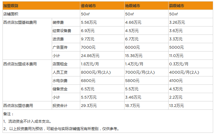4、流動儲備金:投資這家店為后續(xù)可長遠(yuǎn)經(jīng)營,還需提前準(zhǔn)備出5萬元的流動儲備資金。