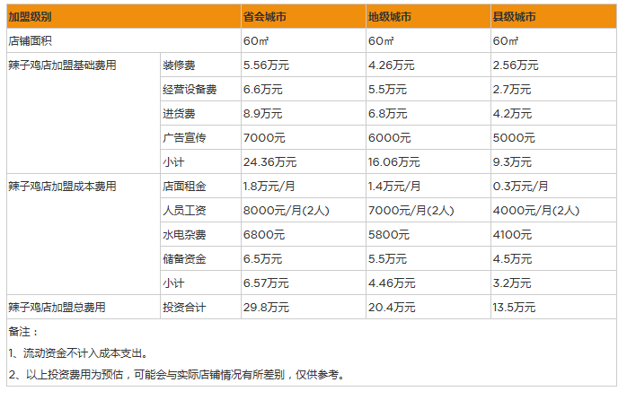 3、辣子雞的開店成本與投資回報(bào)空間