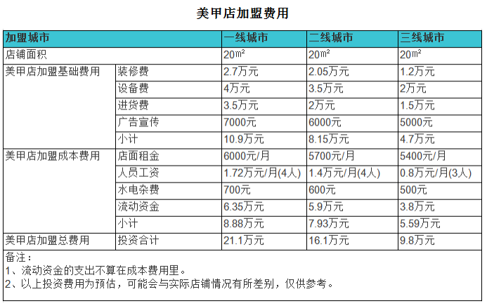 2、店面租金:不同位置的美甲店,所需要的智慧之選都是不同的。一般情況下,美甲店的選擇都是在客流量比較大的街區或則商場里,但這些位置的租金也是非常大的。20平米左右的門面租金2萬左右。