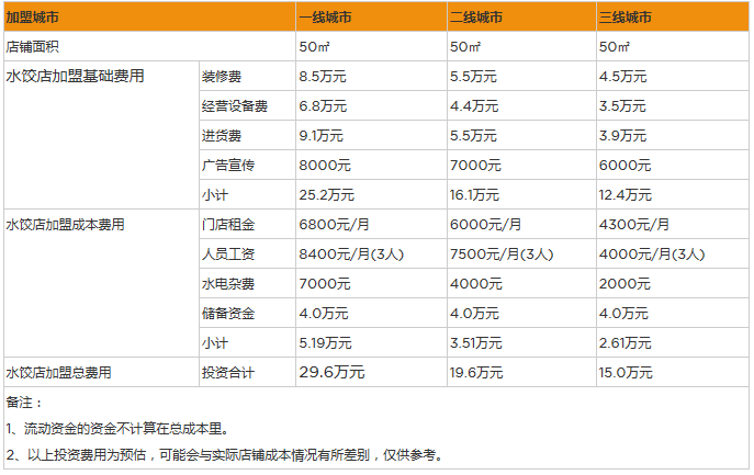 開家水餃店投資一般需要多少錢?50㎡店面投資15萬