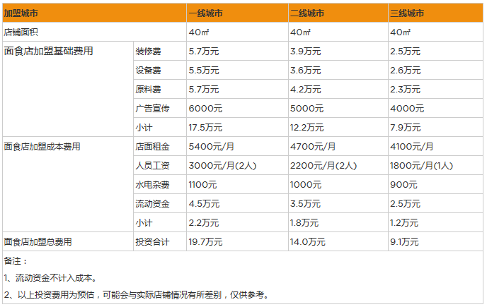 小型面館周轉資金兩千元左右就可以了。
