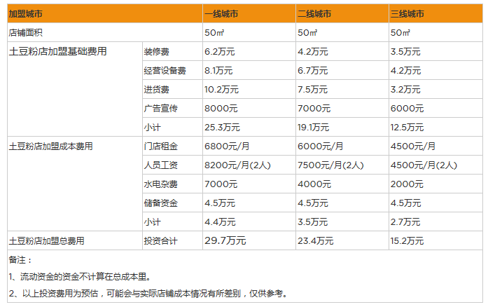 開家土豆粉店投資一般需要多少錢?50平米店鋪預(yù)算15萬起