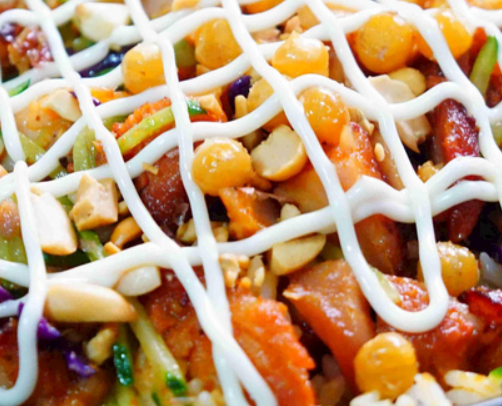 烤肉拌飯也是最近一兩年學校食堂,大學食堂檔口的香餑餑,烤肉拌飯源自土耳其特色美食土耳其烤肉,衍生而來的烤肉夾饃,烤肉卷餅,烤肉拌飯在年輕消費人群中一直占有不少市場。肉類既可以選擇牛羊肉,又可以選擇豬肉、雞肉。烤肉拌飯搭配時令蔬菜,十幾種醬料和撒料口味變化,適合時下年輕人的喜好。