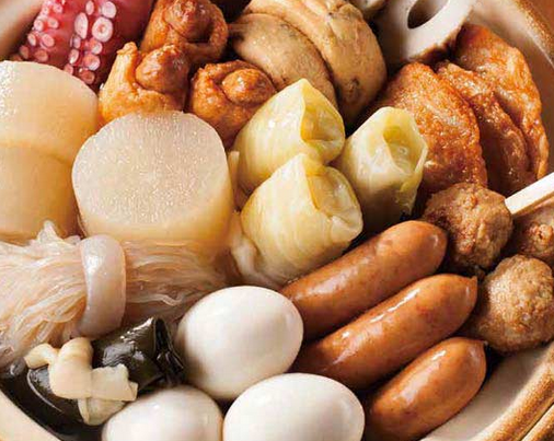 關東煮小吃的特點為產品多樣豐富,比如,其中有燒一香、貢丸、黃金墨魚丸、鱈魚卷、蟹肉鉗、芝麻味蝦球、黃金球等等,有幾十個品種。如果開一家關東煮店是加盟方式,這些半成品和配料會由公司總部統一配送,能使經營更為便捷輕松。