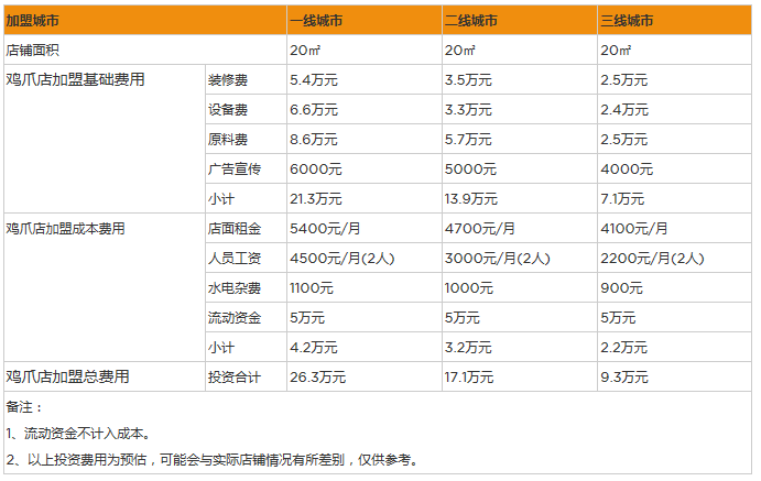 開家雞爪店投資一般需要多少錢?20㎡投資9萬,詳情數據分析