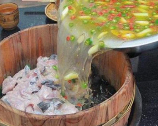 2、從加熱方式來看,有其獨到之處,鵝卵石再菜籽油中,經過大火高溫加熱,放入桶的底部,連湯加魚片放入桶中,經過十分鐘左右,魚片即可進食。