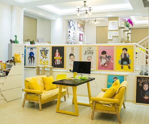 其次門店裝修,這就要考慮到是加盟品牌又或者是自創品牌了。加盟品牌的店面裝修和設計都是統一的,比如說兒童攝影加盟店,裝修的主題色調是提夫尼藍和黃色。自創品牌的話可能就顯得麻煩一點,個人在裝修風格上就要費上一番功夫了。