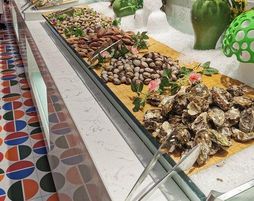 我們以每人130元的中檔海鮮自助餐廳來看,里面的菜品就會有比較多的海鮮,牛肉等,但是細心的小伙伴們就會發現,他們還提供各種各樣看上去就很好吃的糕點,而這些糕點基本上都是類似壽司,餅干之類的比較能充饑的糕點。而我們選菜的時候用的盤子比較小,一般我們裝個四五盤就覺得回本了,其實根本就沒有裝到很多,此消彼長,和那些便宜的糕點酒水一平攤下來,我們有的時候連一半金額也沒吃夠。